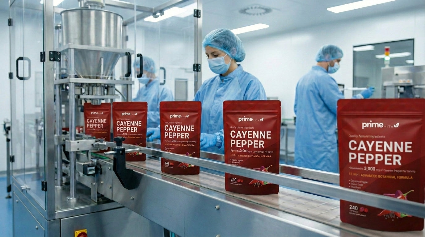 Unser Cayennepfeffer-Supplement liefert 3.000 mg Capsaicin pro Portion — klinisch dosiert für maximale Wirkung. Entwickelt zur Unterstützung von Durchblutung, Blutdruck und männlicher Vitalität. Hergestellt in einer FDA-registrierten Einrichtung und von Drittlabors getestet.
